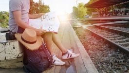 young man traveler with backpack and hat at the train station wi Sizes: 150 × 150 / 300 × 192 / 637 × 407 / 637 × 407 / 265 × 150 / 637 × 440 / 2560 × 1635